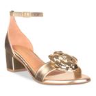 Sandalia Feminina Salto Baixo Bloco Grosso Takata Flor Luxo Metalizado Festa Confortavel