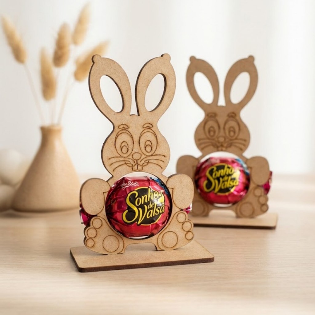 Coelho Porta Bombom em MDF Cru Kit 2 Peças para Lembrancinhas Páscoa