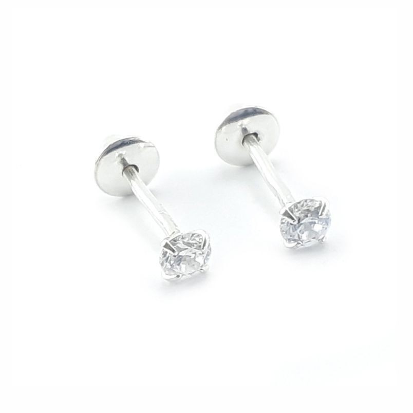 Brinco Ponto De Luz Prata 925 Zircônia Com Tarracha Baby
