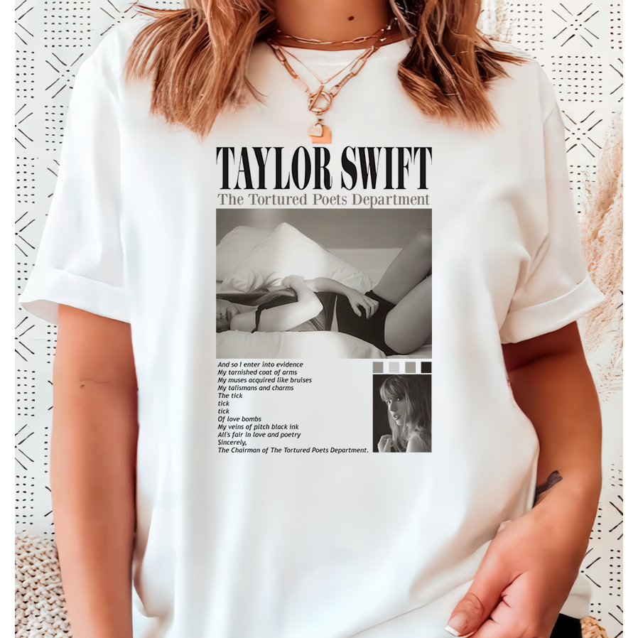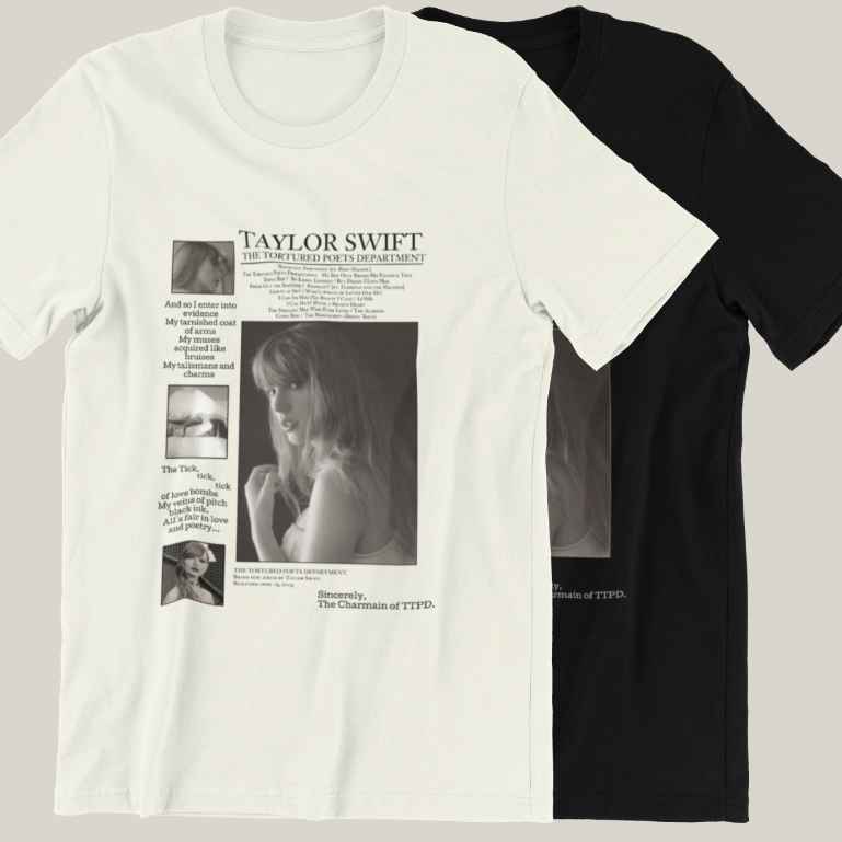 Camiseta Taylor Swift | 100% Algodão | The Tortured Poets Department | Branca ou Preta | TTPD