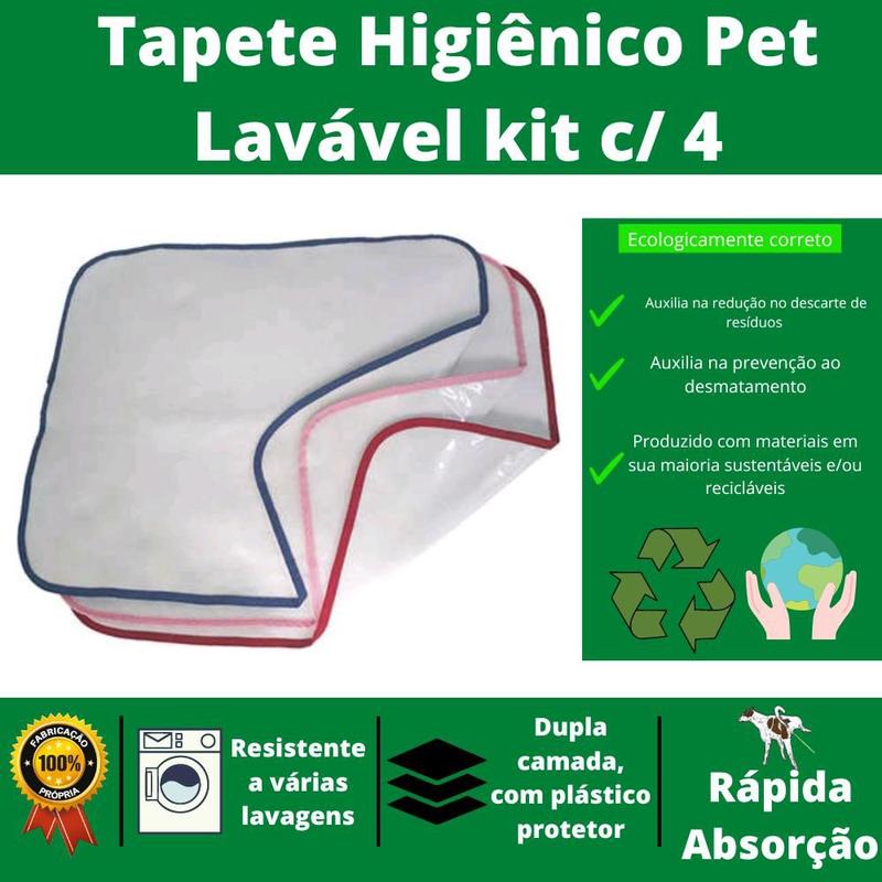 Kit c/ 4 Tapete higiênico pet lavável ecologicamente correto
