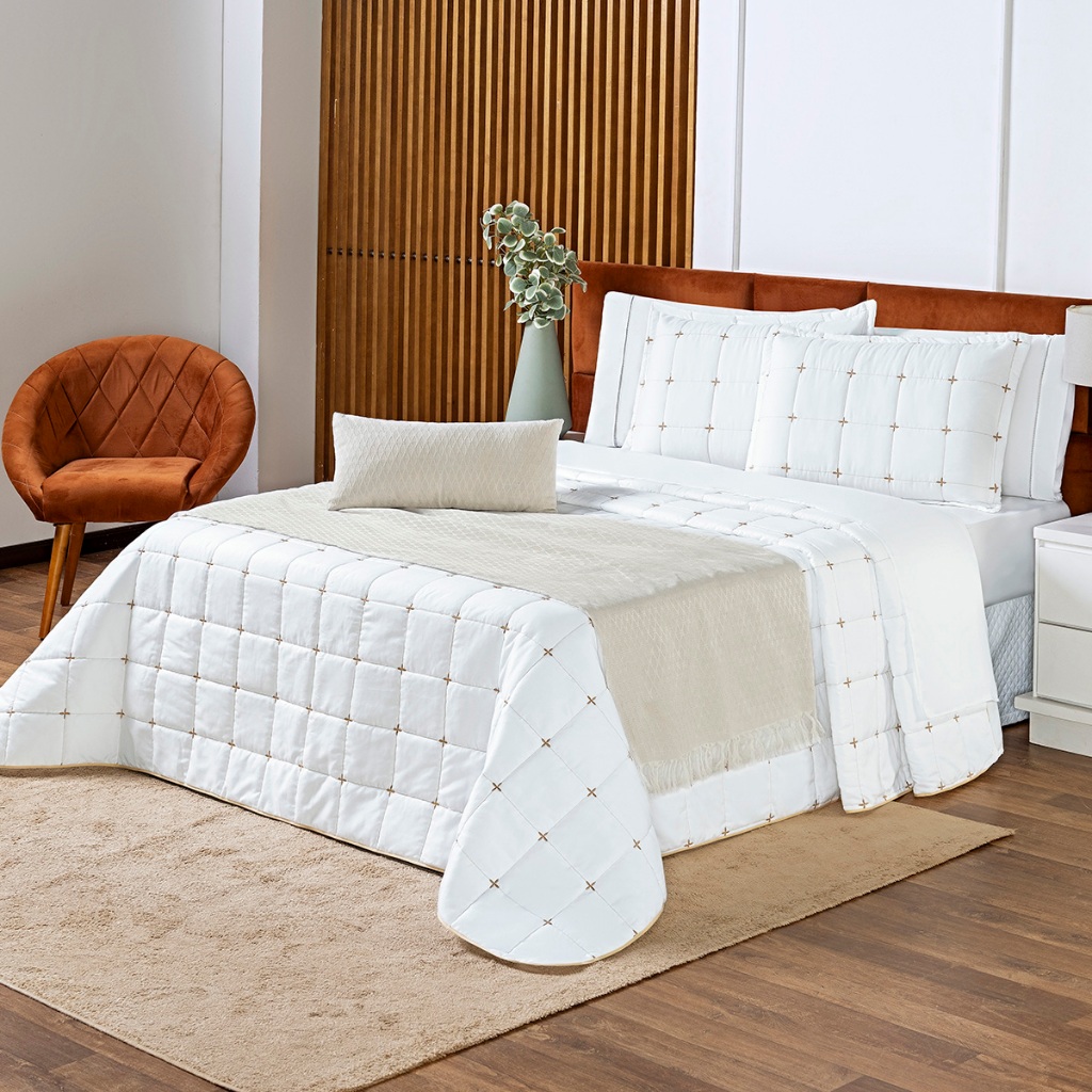 Kit Jogo De Colcha Cobre Leito Karsten 3 Peças Cama Casal 100% Algodão Percal 150 Fios