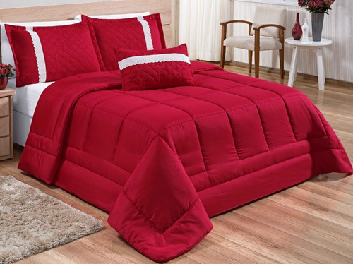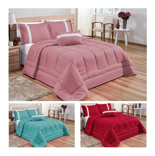 Kit Edredom Casal Padrao Queen Com Jogo De Cama Lençol 6 Peças Aconchego