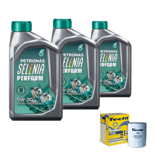 Kit Troca de Óleo linha Fire Flex. 3 Litros de Óleo 5W30 Petronas Perform 100% Sintético e Filtro de Óleo PSL55/TM5 Tecfil. Novo UNO, Palio, Strada, Doblo, Fiorino etc...