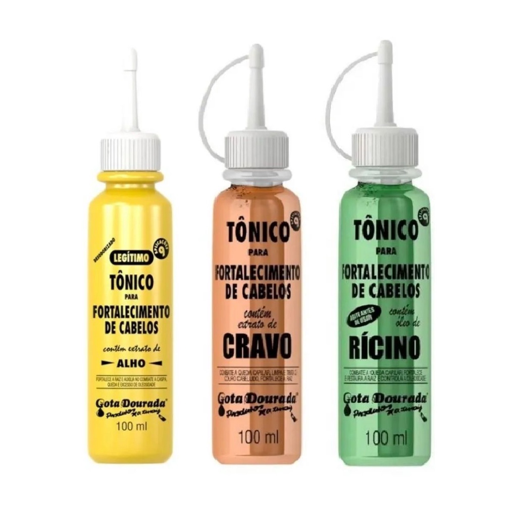 Kit c/ 3 Tônico Capilar Gota Dourada Cravo Óleo de Rícino e Alho 100ml