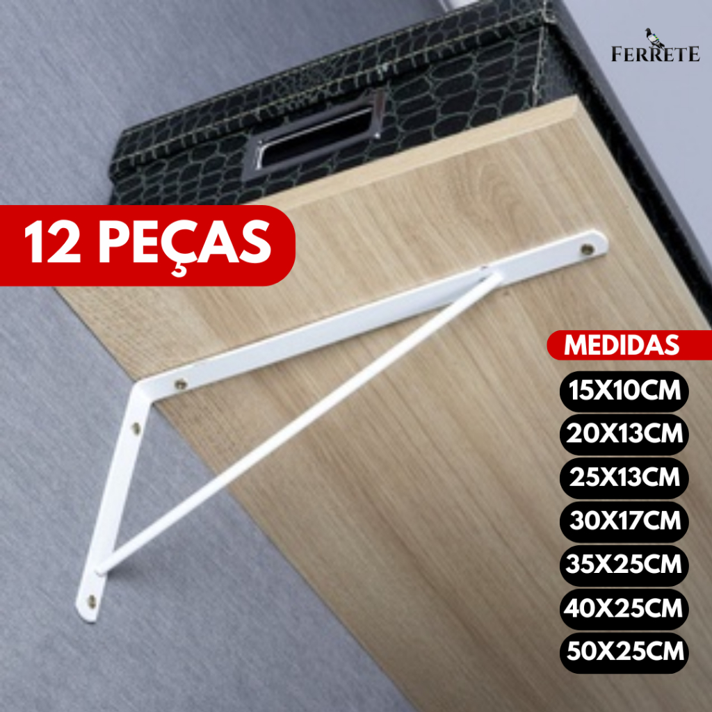 Kit 12 Peças Suporte de Prateleira Reforçada, Cantoneira Com Mão Francesa - (15cm a 50cm)