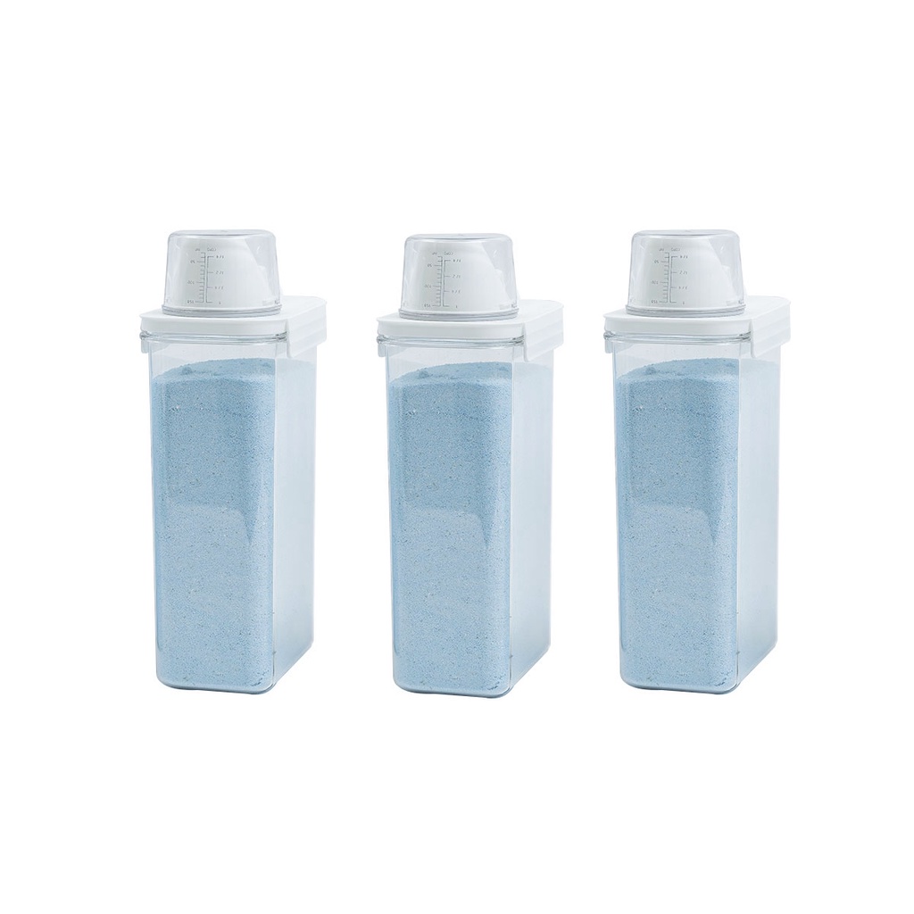 Kit de 3 porta sabão em pó 2,3L com copo dosador e travas de lavanderia - Oikos