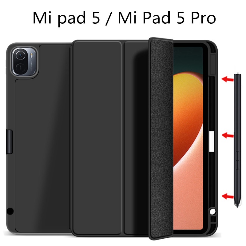 Estojo Para Xiaomi Mi pad 5 Pro 5 11 Polegadas Smart Funda Mipad Suporte Trifold Soft TPU Tampa Traseira Com Porta-Lápis
