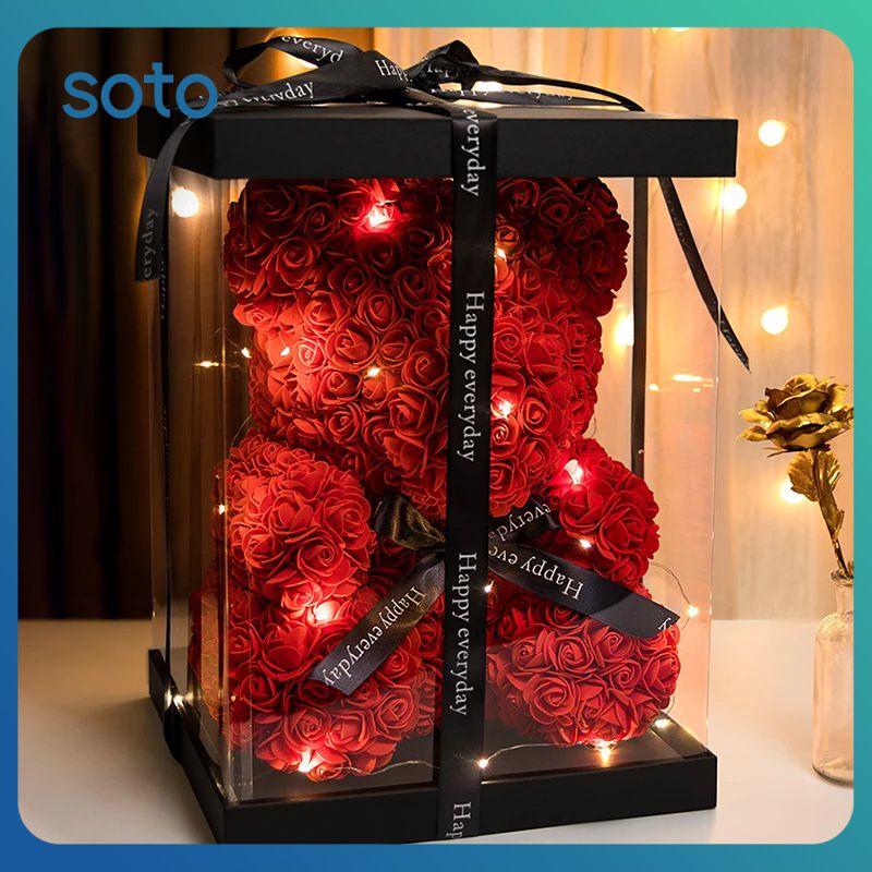 Soto 25/40cm Ursinho De Pelúcia De Rosas, Dia Dos Namorados, Presente De Aniversário, Flor Artificial, Caixa De Presente, Rosa, Ursinho De Pelúcia, Presentes