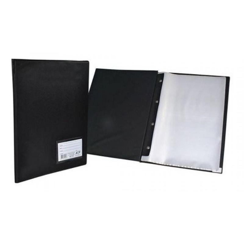 Pasta Catálogo A4 Ofício Preta ACP com 20 Sacos Plásticos Para Organizar e Arquivar Papéis, Documentos, Relatórios e Trabalhos