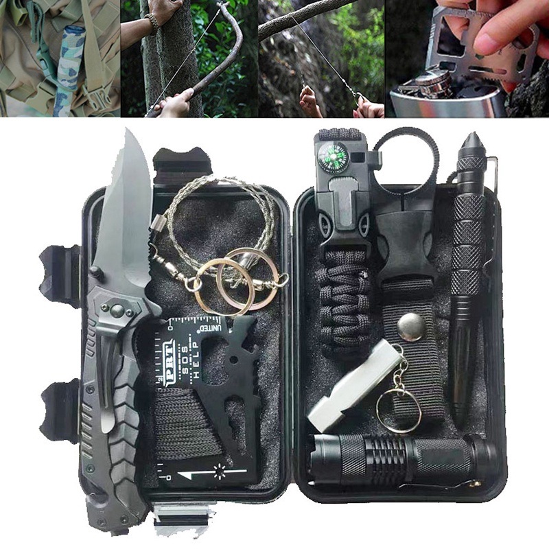 Novo Kit De Sobrevivência De Emergência 9 Em 1 Exterior Conjunto De Ferramentas Militares De Primeiros Socorros SOS EDC
