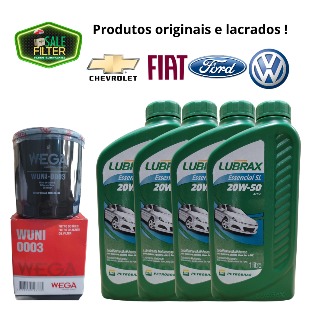 KIT TROCA DE ÓLEO MINERAL 4L 20W50 + FILTRO DE ÓLEO WEGA WUNI0003