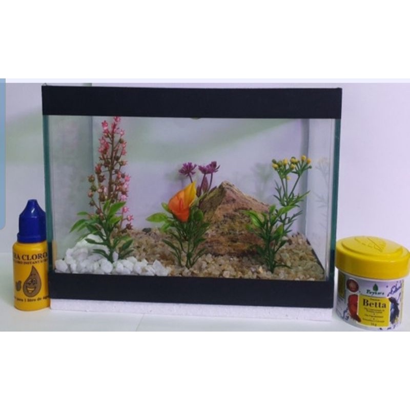 Kit Beteira P/Peixe Betta Ração +Rede +Anti Cloro+Redinha+Folha Descanso Kit Completo Para Seu Peixe Betta/OBS Decoração Variada