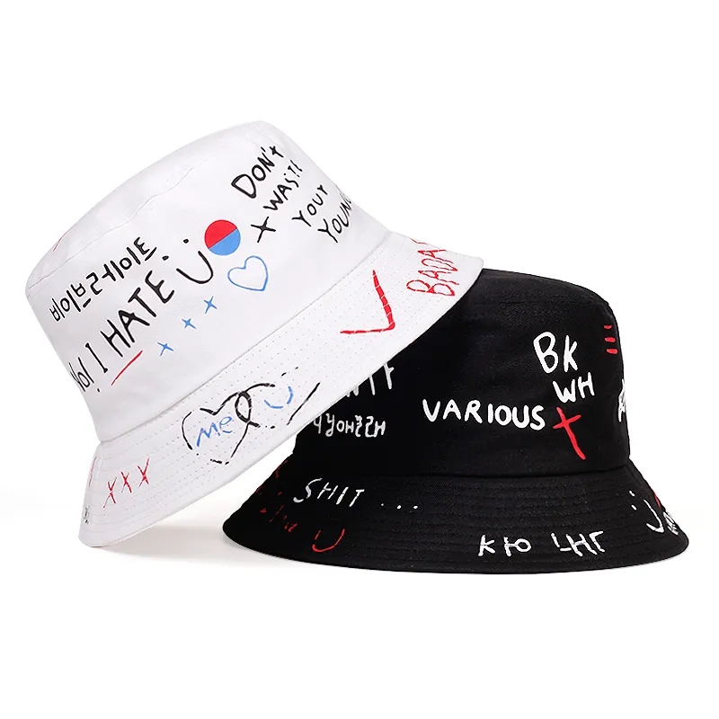 1 Unisexo Carta Grafite Grafite Chapéu de Balde Impresso Chapéu de Proteção Solar Exterior Chapéu Casual Adequado para Homens Mulheres Quatro Estações Festa de Viagem à beira-mar