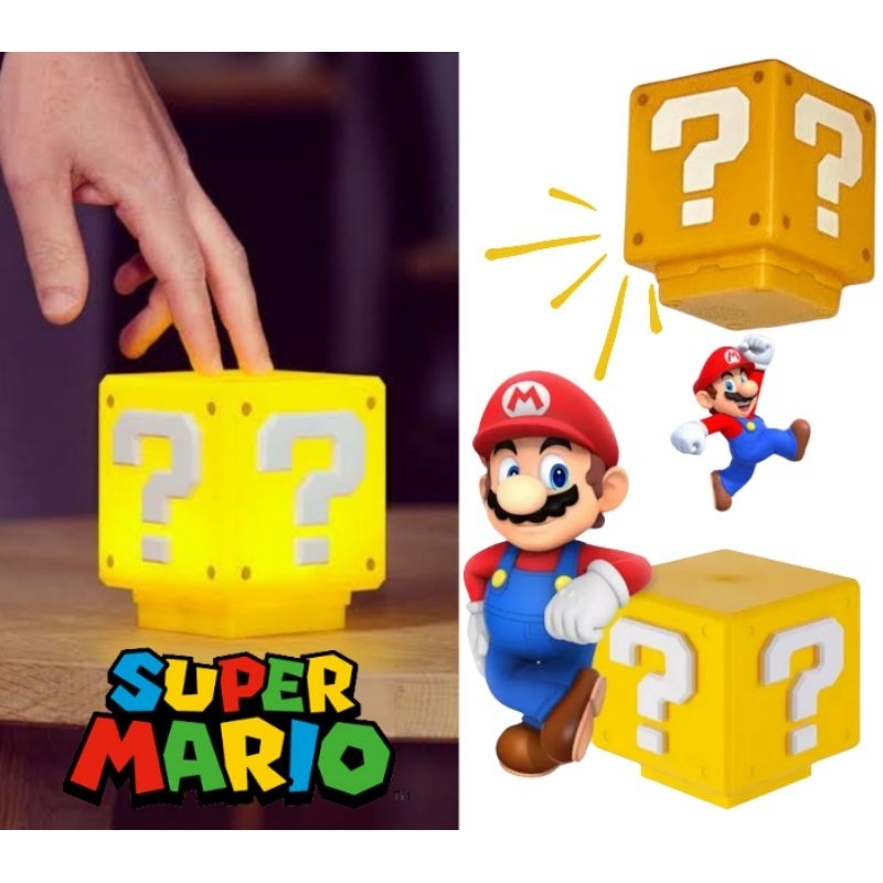 Luminária Abajur Mini Question Block de Led 3D Recarregável USB Geek Coleção Jogos Super Mario