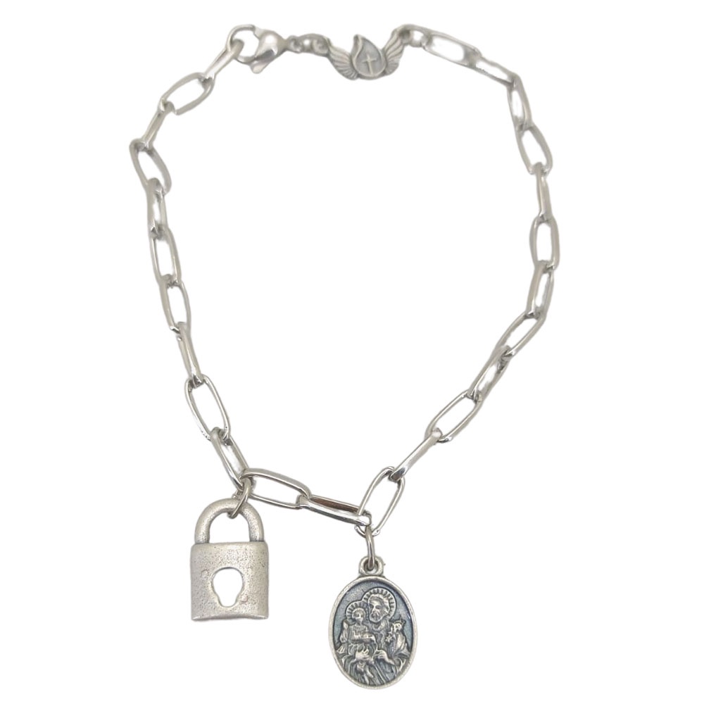 Pulseira Cadeia da Consagração Com Medalha de São José em Inox