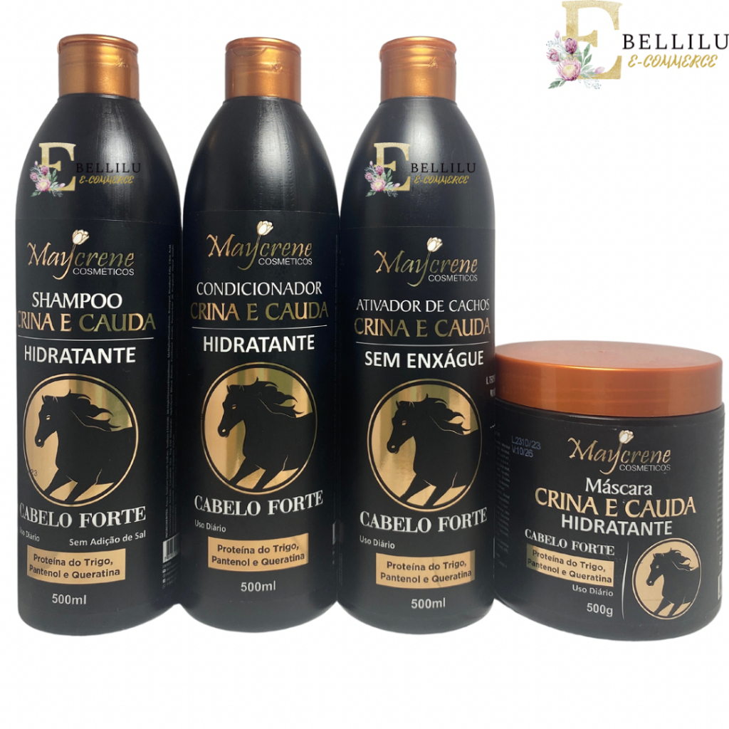 Kit Crina e Cauda Crescimento Capilar - Maycrene (Shampoo, Condicionador, Máscara e Ativador De Cachos)