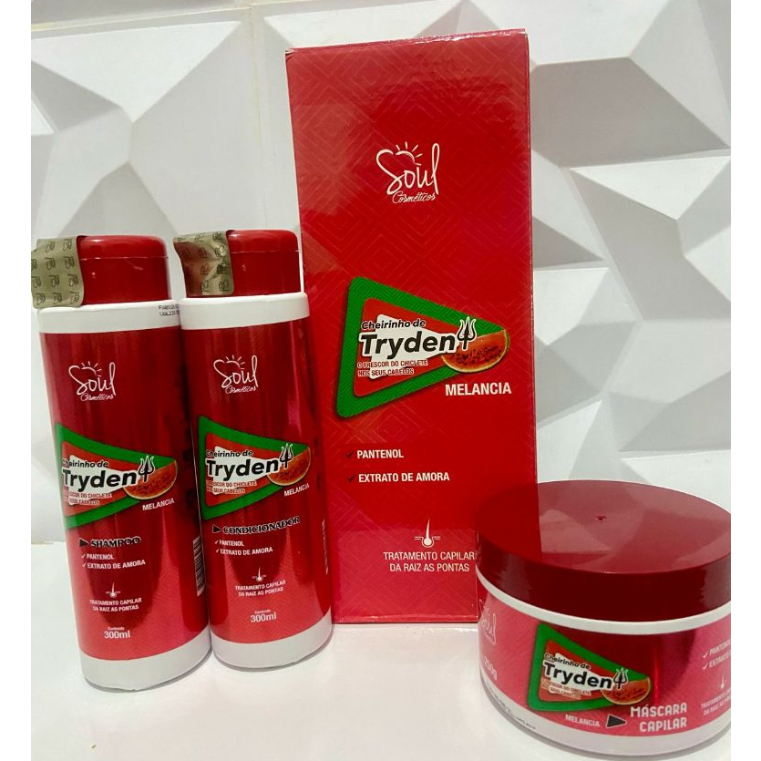 Kit Capilar trydent cheirinho de melancia Shampoo Condicionador Máscara de Hidratação Babalu Soul Cosméticos