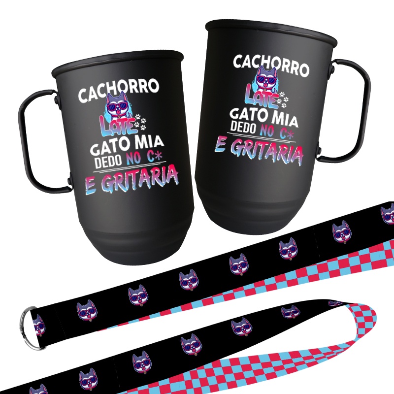 Caneca 850 ml com tirante - Cachorro late e gato mia