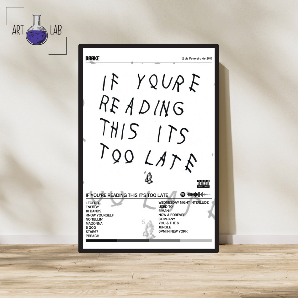 Quadro decorativo álbum Spotify Drake If You're Reading This It's Too Late moldura e vidro