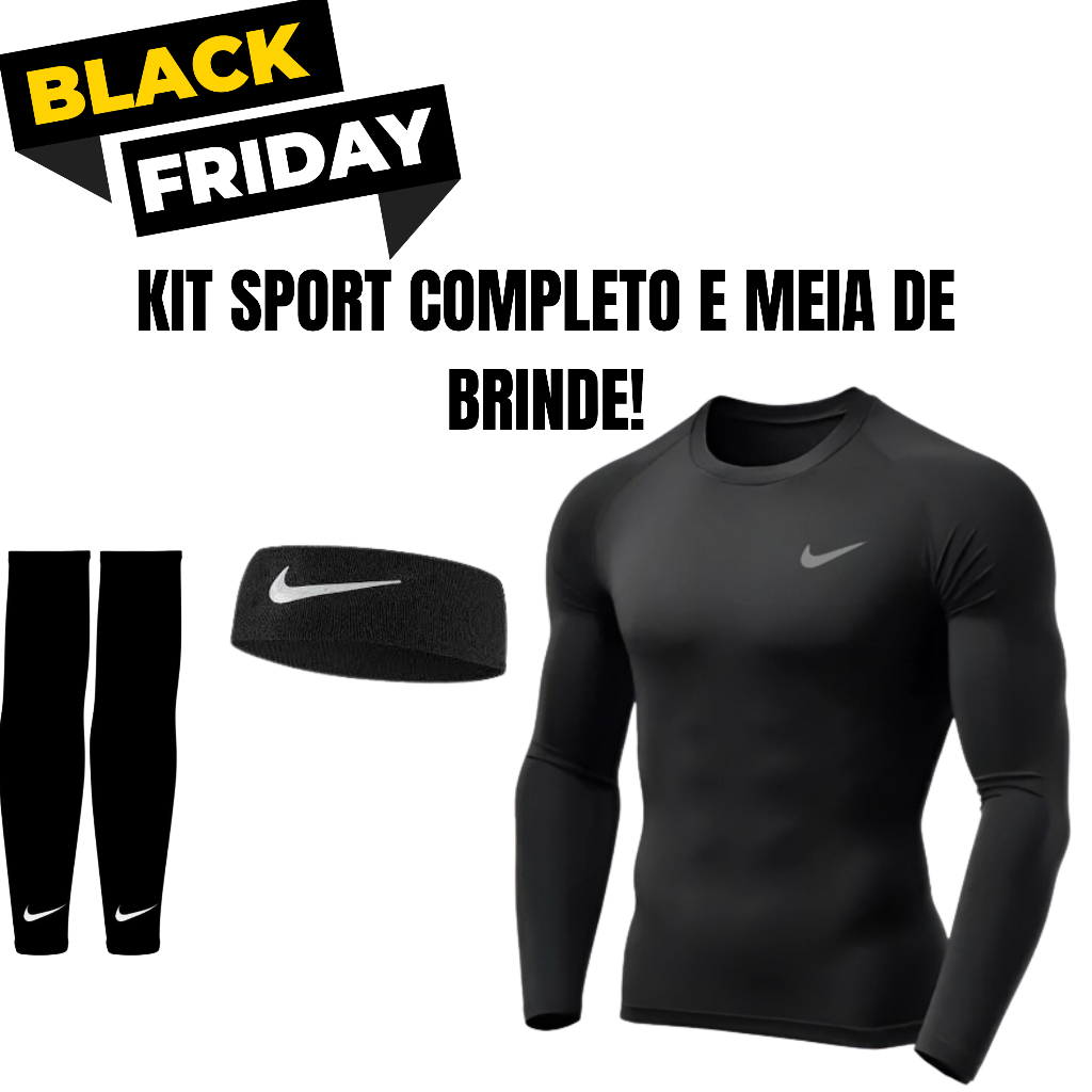 Kit esporte com camisa térmica proteção uv segunda pele + faixa de cabelo esportiva + manguito proteção uv