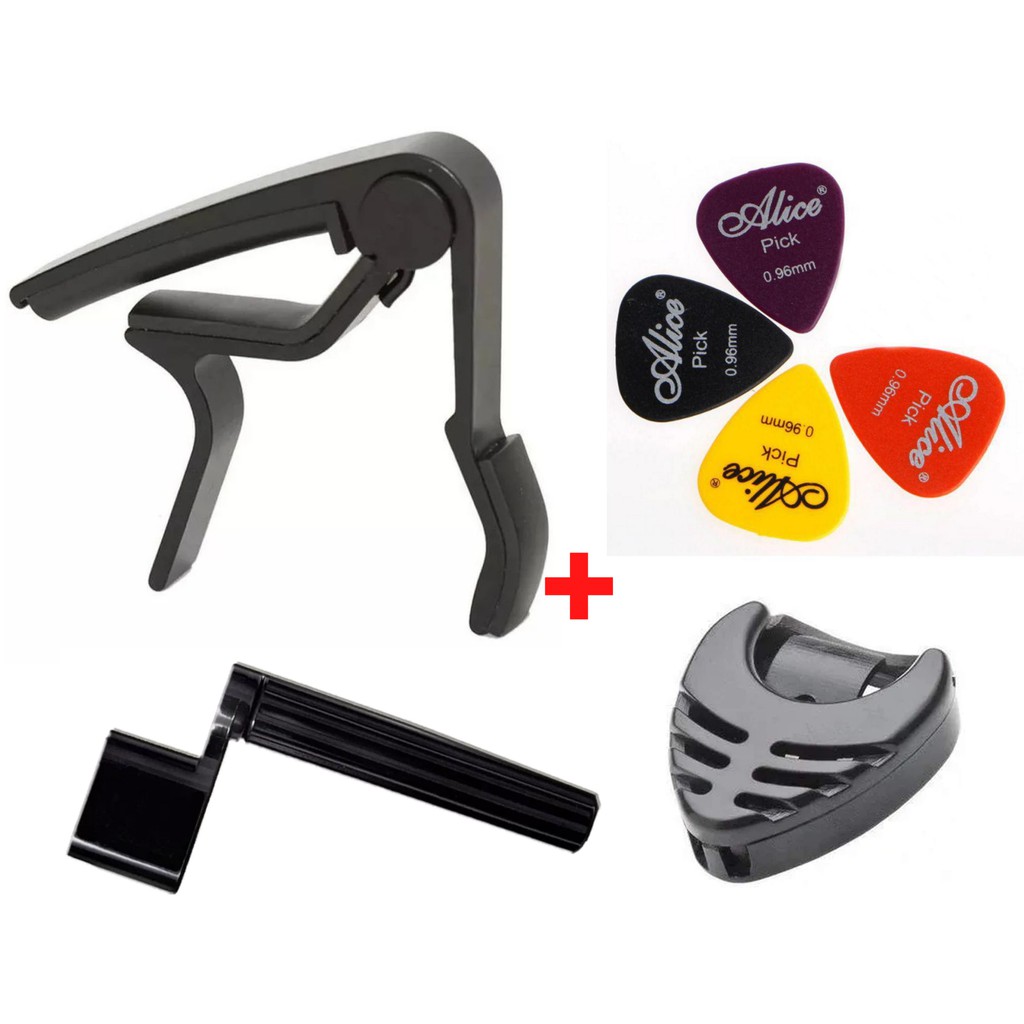Kit Violão Capotraste + encordoador + porta Palhetas + 4 palhetas
