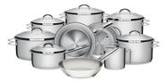 Jogo de Panelas Tramontina Fundo Triplo Cooktop Fogão Indução Aço Inox Kit 7 Peças Conjunto Allegra