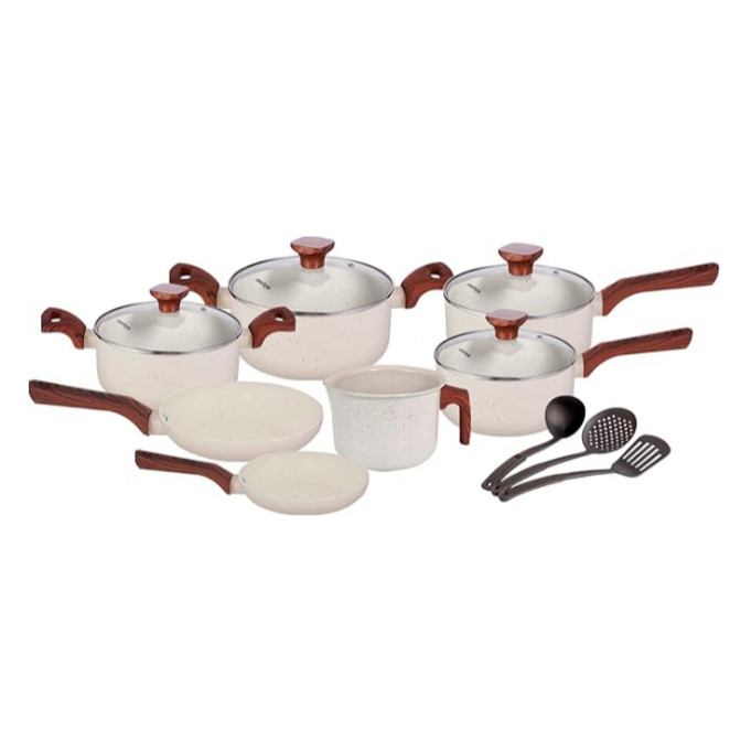 Kit Jogo De Panelas Ceramica Antiaderente Fundo Triplo Fogão Indução Cooktop Mimo Style Cook Marmol Conjunto 10 Peças Panela Caçarola Frigideira Leiteira E Utensílios