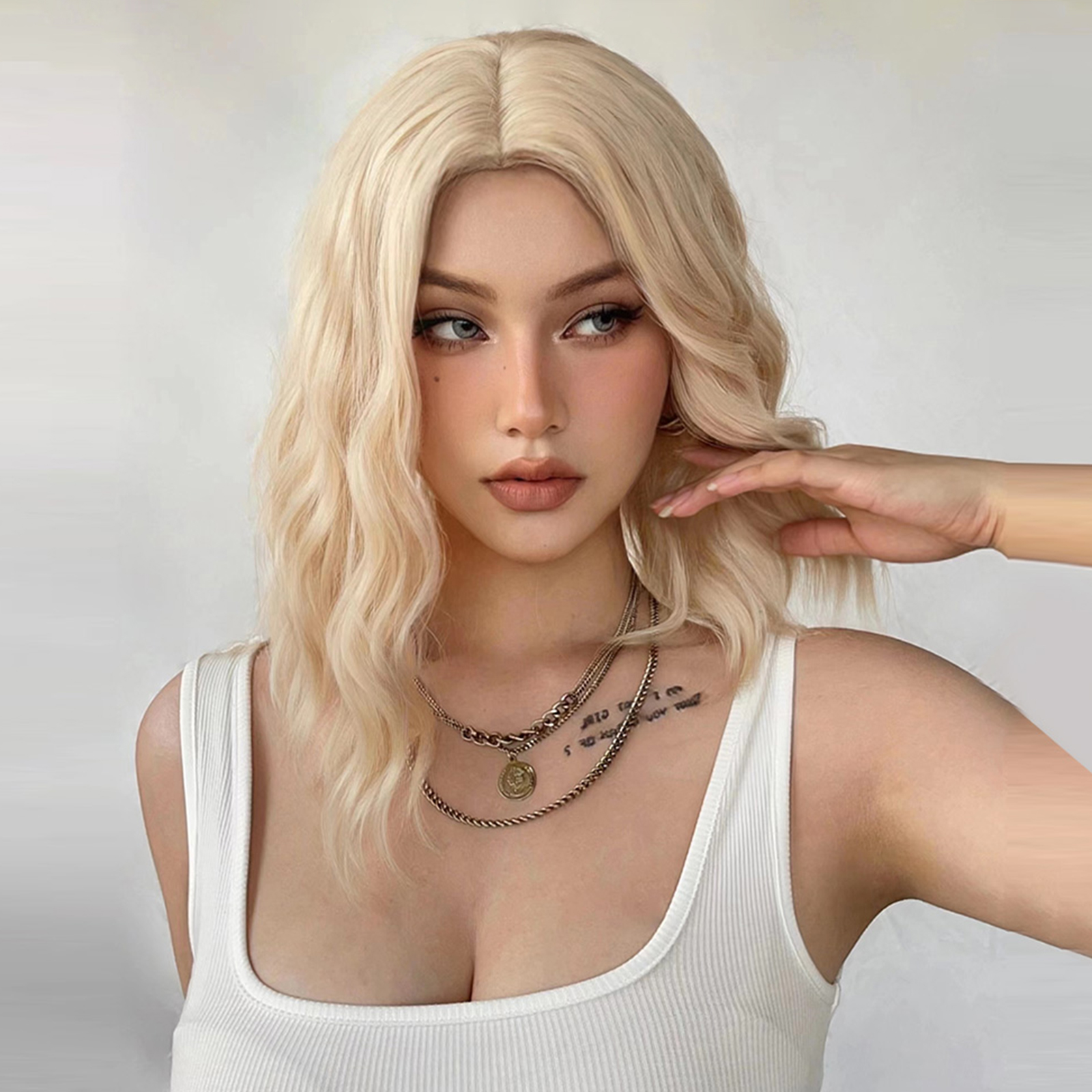 16 Polegadas Perucas Curtas Encaracoladas Loiras Para Mulheres WL1050-1