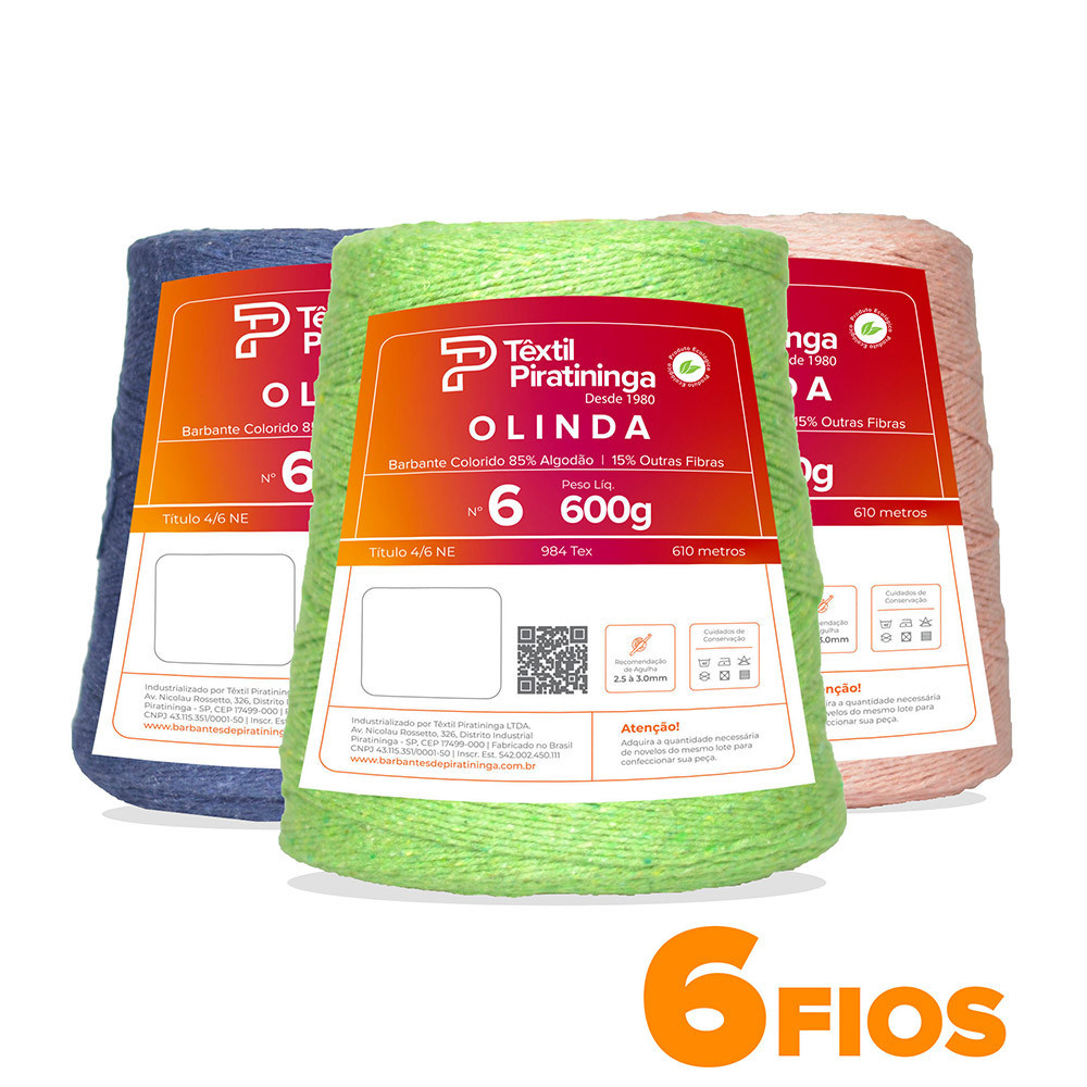 Barbante Olinda Textil Piratininga 600g nº6 - Cores - Trico / Croche