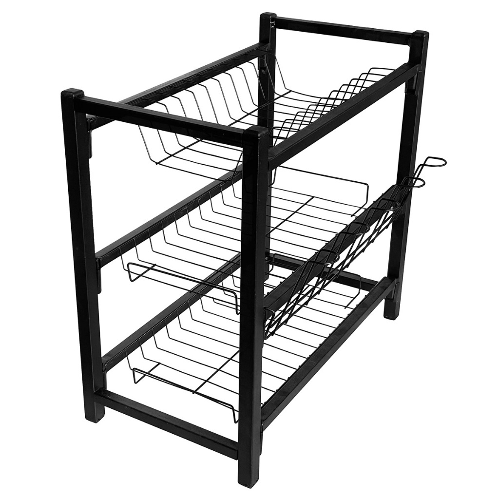 Escorredor de Louça Luxo – 2 Andares com Porta-Pratos, Talheres e Copos | Preto