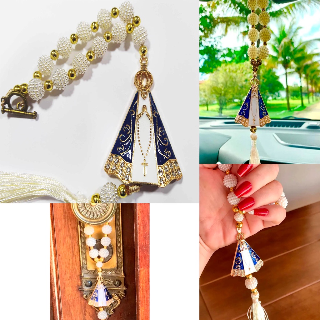 Enfeite terço para carro Nossa Senhora Aparecida Pérolas