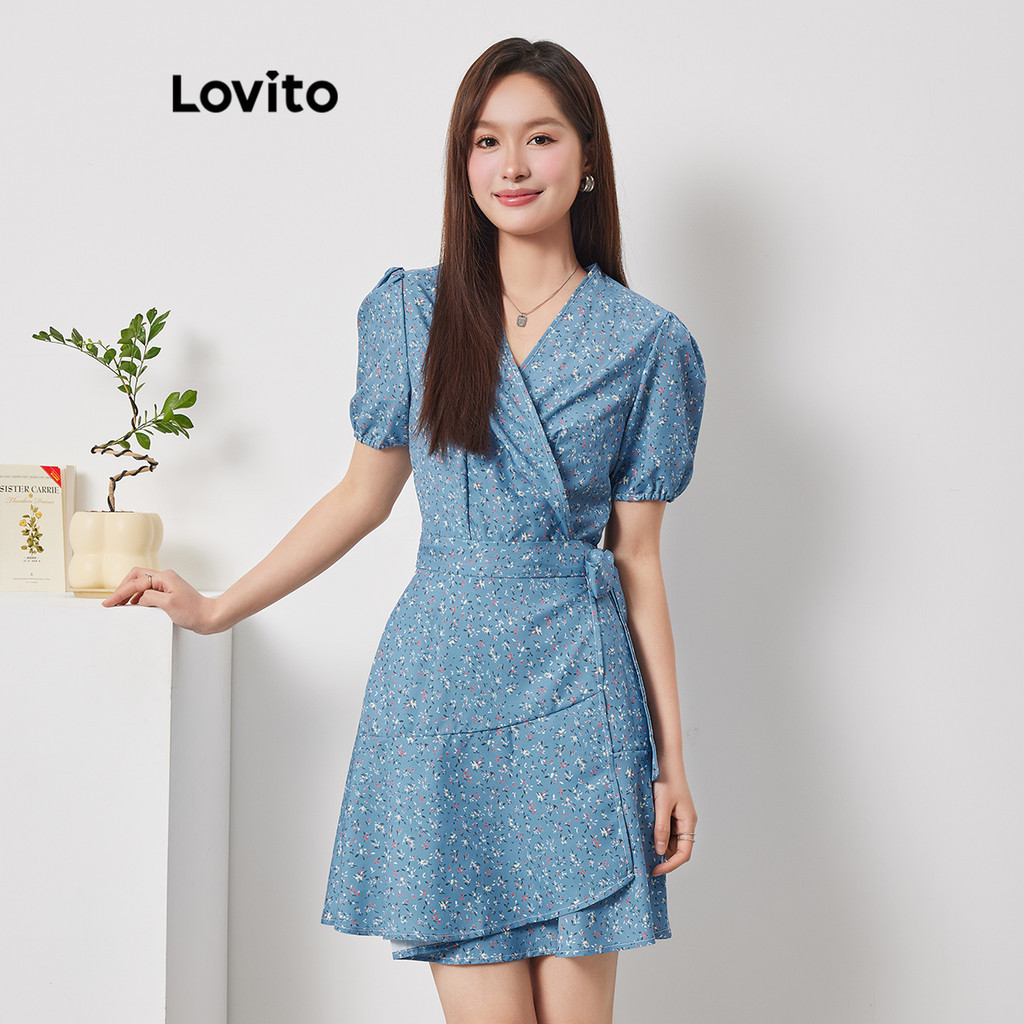 Lovito Casual Vestido Feminino com Estampa Floral e Cinto L74ED321