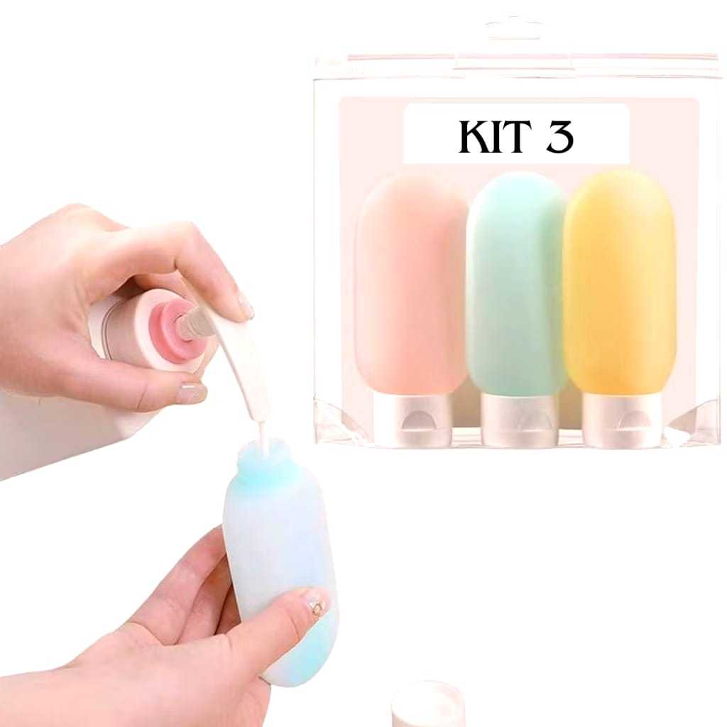 KIT 3 Frasco 60ML Com Estojo Transparente Prático E Útil Para Viagens Top Útil Dispensador De Viagem