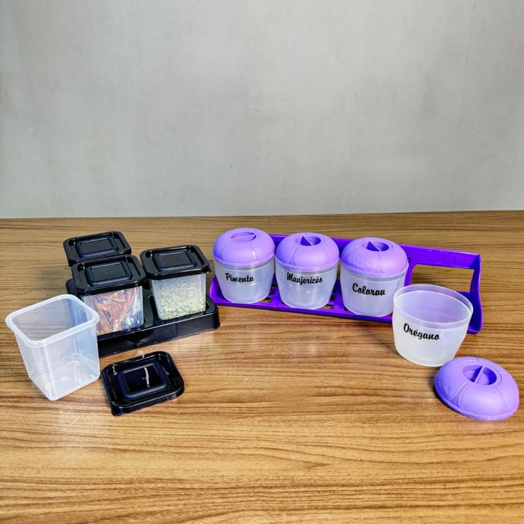 Kit com 2 Jogos de Porta Temperos: Quadrado e Redondo, Prático e Funcional para Organizar e Armazenar Temperos
