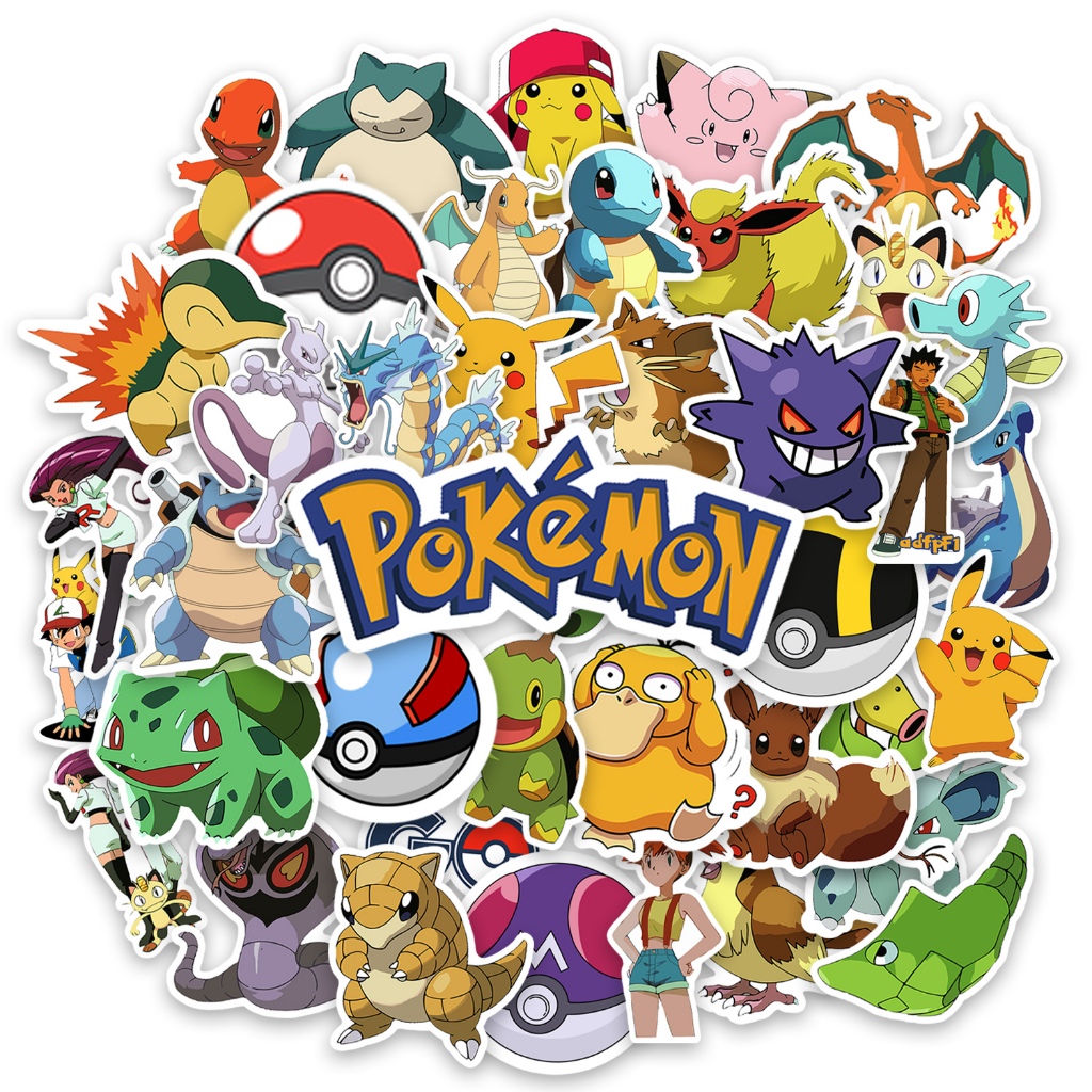 Kit Cartela Com 40 Adesivos Variados Pikachu Bulbasaur Charmander Squirtle Ash Blastoise Dragonite Mewtwo Para Caderno Notebook Carro Moto Capacete Skate