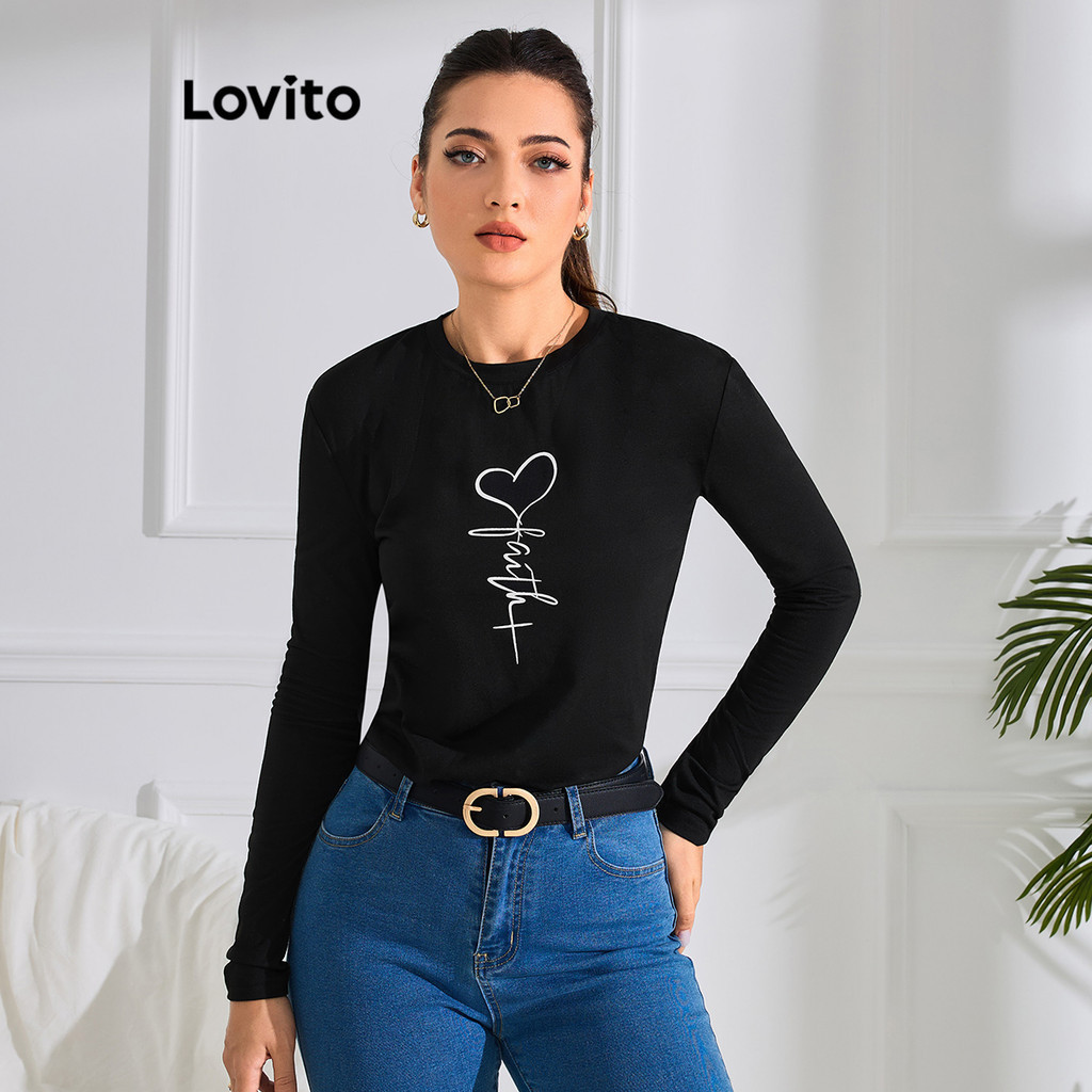 Lovito Camiseta Feminina Casual Com Estampa Lisa LNE40342