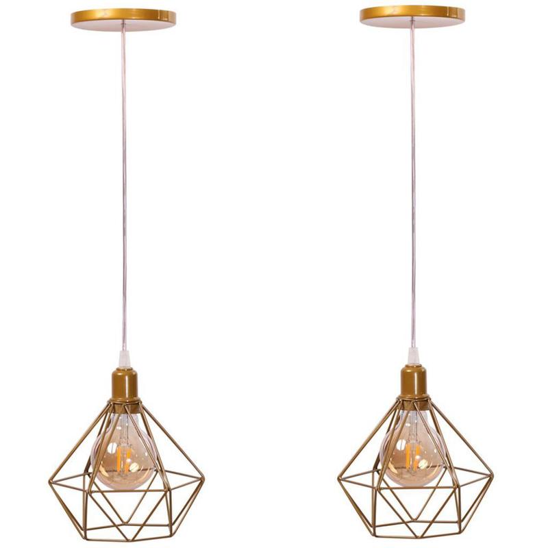 Kit 2 Pendente Lustre Luminária Aramado Diamante