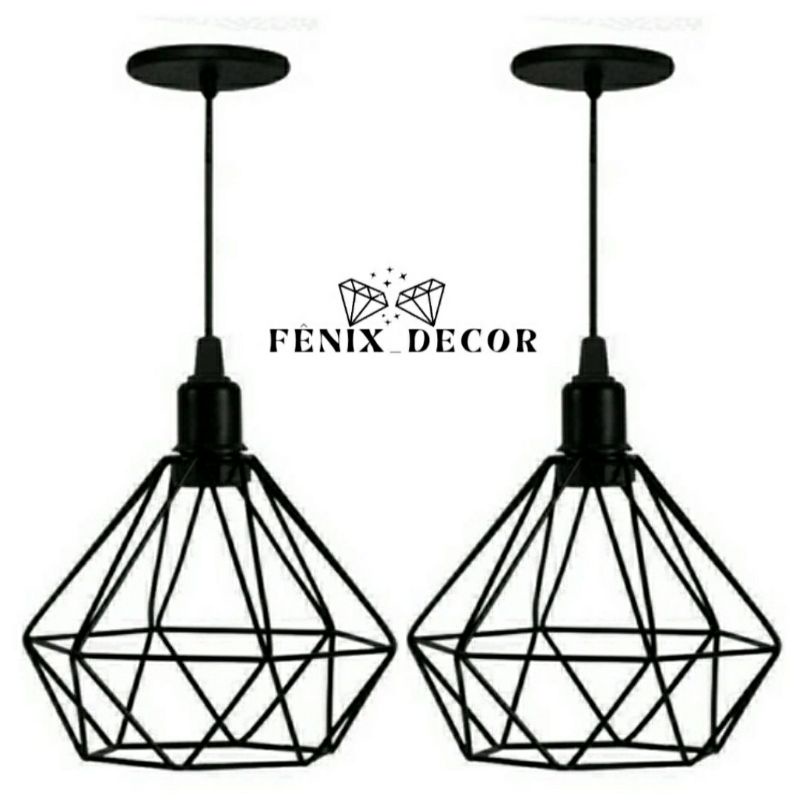 Kit 2 Pendente Lustre Luminária Aramado Diamante Preto