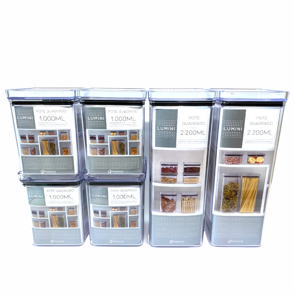 Pote Hermético Quadrado Conjunto Cozinha Organizador 6 Peças
