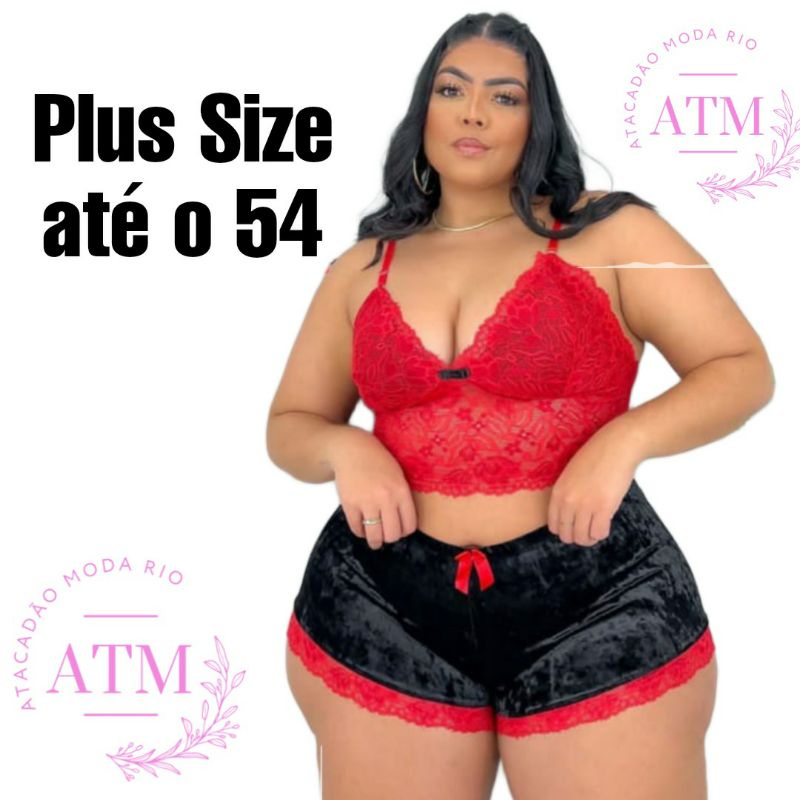 Conjunto feminino plus size baby Doll sexy lingerie blogueirinha 44 46 48 50 52 54