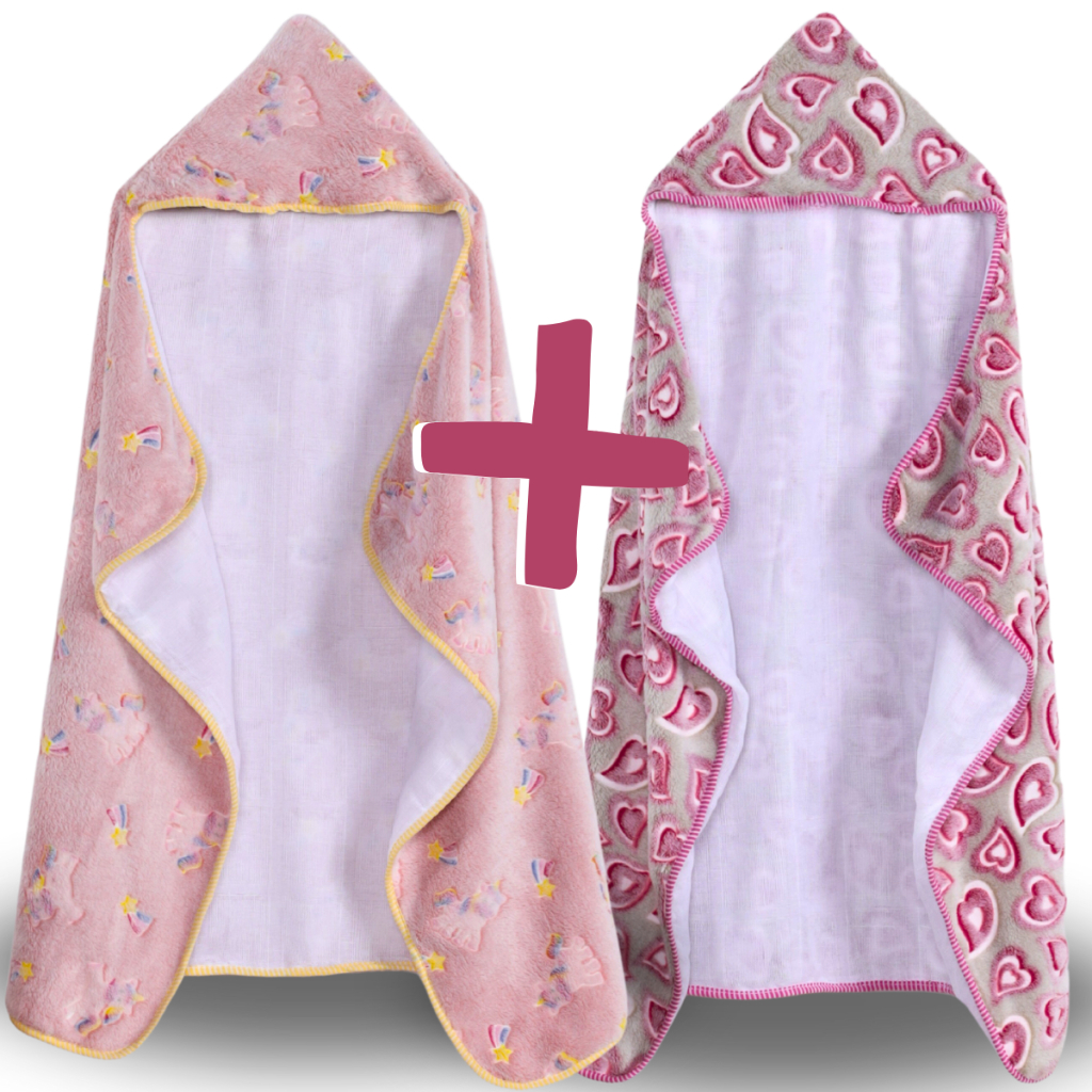 kit 2 Toalha de Banho Felpuda para bebê com Capuz Menina Menino