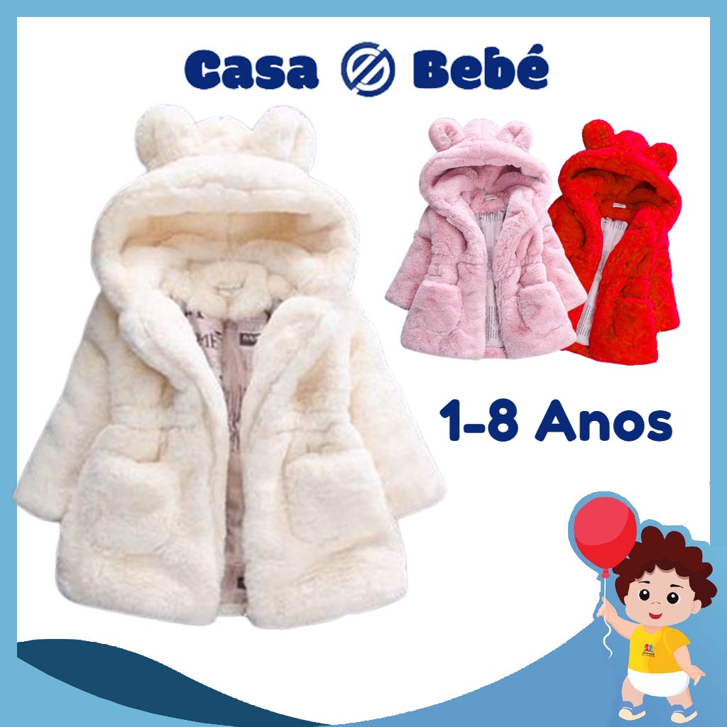 2023 Imitação De Pelúcia Meninas Casaco De Inverno/Encapuzado Para Crianças De 1-8 Anos De Idade Manter A Casa Quente do bebé
