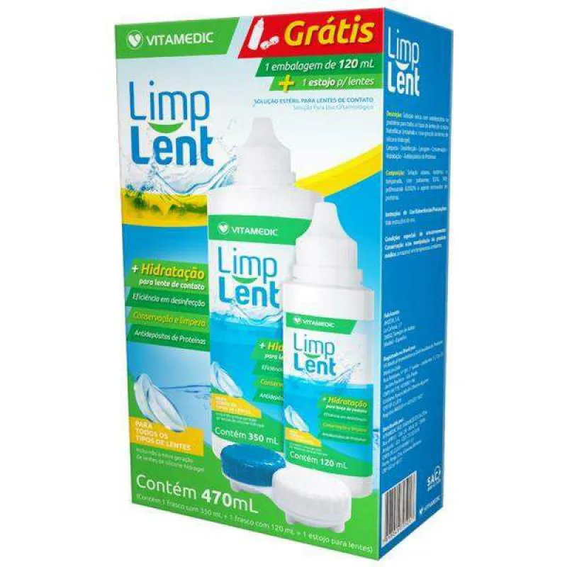 SOLUCAO PARA LENTE DE CONTATO 350ML +120ML LIMP LENT COM ESTOJO GRáTIS