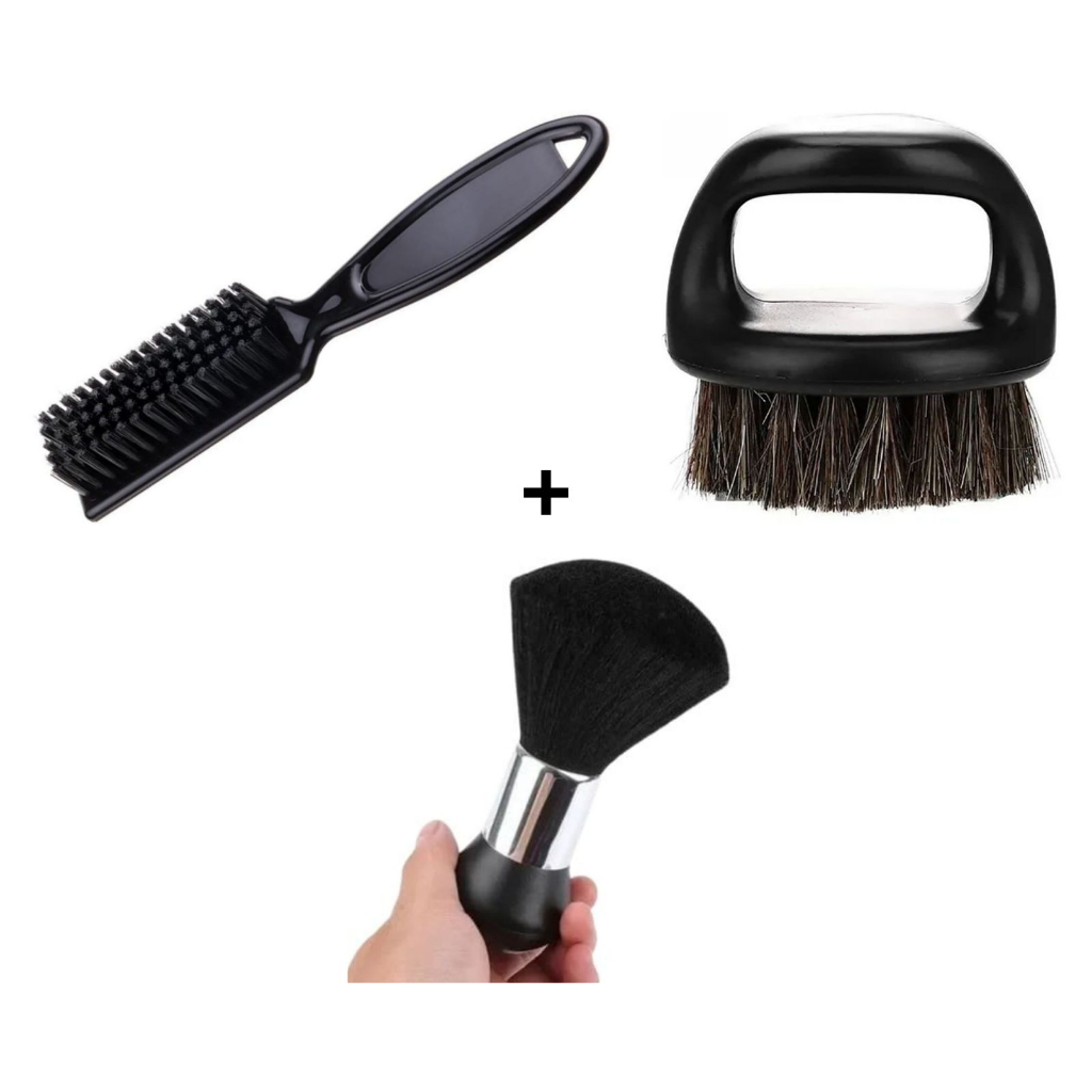 Kit Escovinha P/ Barba + Pente Corrido e Espanador Escovinha de Disfarce preta Barbearia Barbeiro