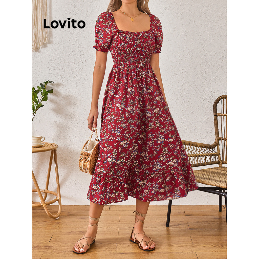 Lovito Vestido Feminino Boho Ditsy Com Estrutura Floral E Bainha Com Babados LBL08162
