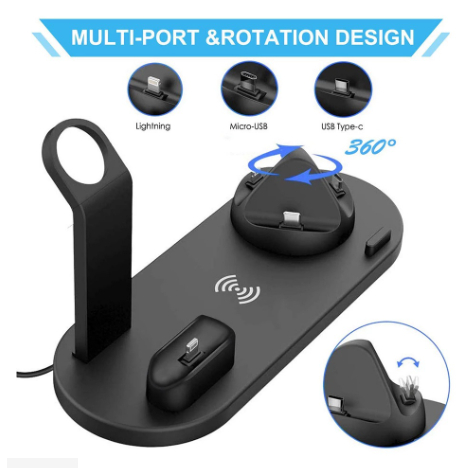 6 Em 1 Carregador Rápido Sem Fio De 30W De Estação De Doca Para IPhone 13 12 11 Suporte De Carregamento Pro Relógio Apple 7 6 SE AirPods