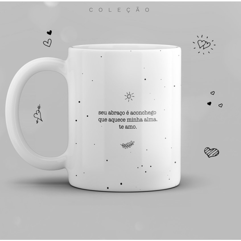 Caneca Seu abraço é aconchego que aquece minha alma - Presente Dia dos Namorados