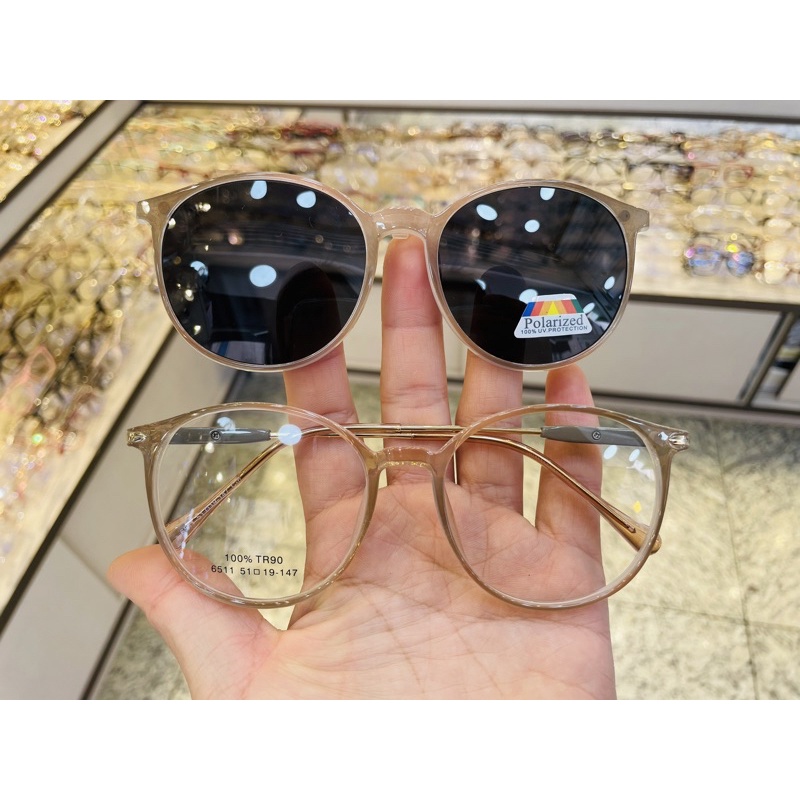 Clipon feminino óculos redondo 2 em 1 óculos de sol lente polarizada 6511