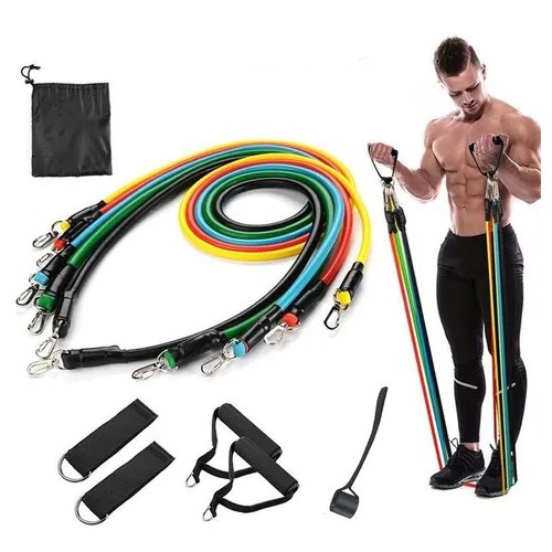 Kit Completo De Elástico Extensor 11 Itens Para Treino Academia Exercícios Em Casa Band Home Fit Musculação Forte
